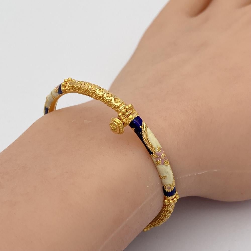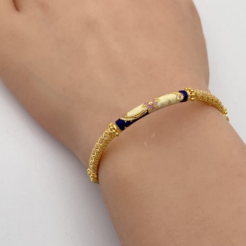 اسوارة ذهب عيار 21 وزن 8.48 جرام بتصميم تراثي مزخرف وألوان زاهية