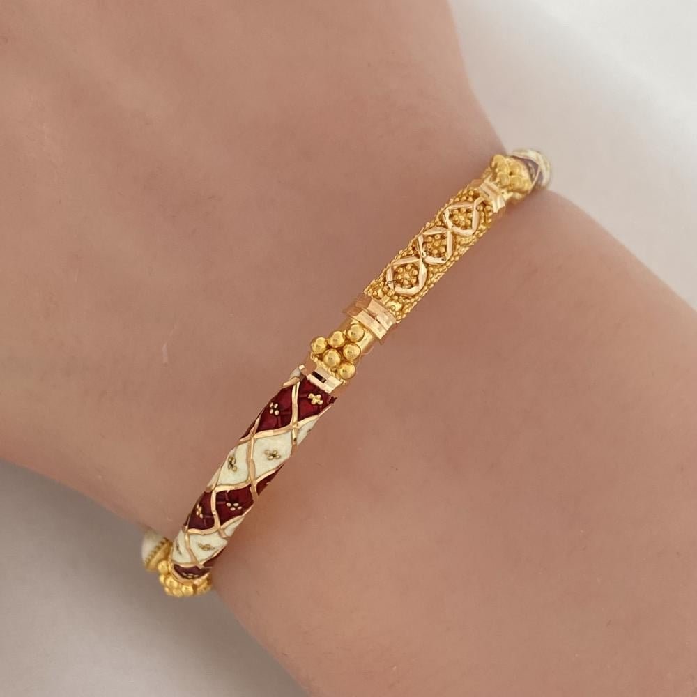 مواصفات اسواره ذهب عيار 21 وزن 11.9 جرام بتصميم مزخرف ولمسات مينا ملونة