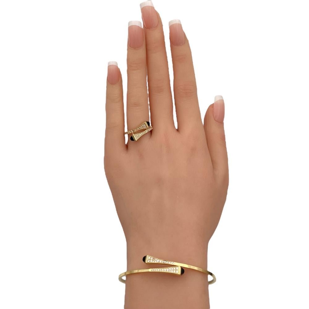 - السوار والخاتم يتصميم مارلي الشهير المستوحى من أفخم دور المجوهرات العالمية، مما يمنحك لمسة عصرية جذابة.