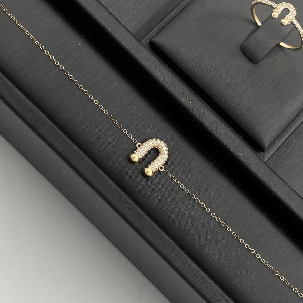 طقم ذهب حدوة الحظ دورين عيار 18 الوزن 3.44 جم لإطلالة أنيقة وجذابة