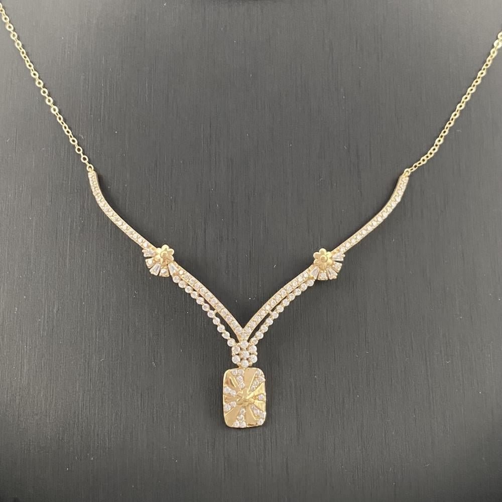 مواصفات طقم ذهب تصميم الماس عيار 18 وزن 5.86 جم مع تعليقة أنيقة