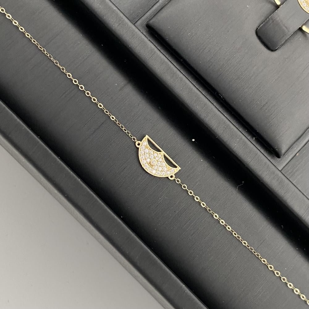مواصفات طقم ذهب فخم عيار 18 وزن 2.77 جم نصف دائرة مرصعة