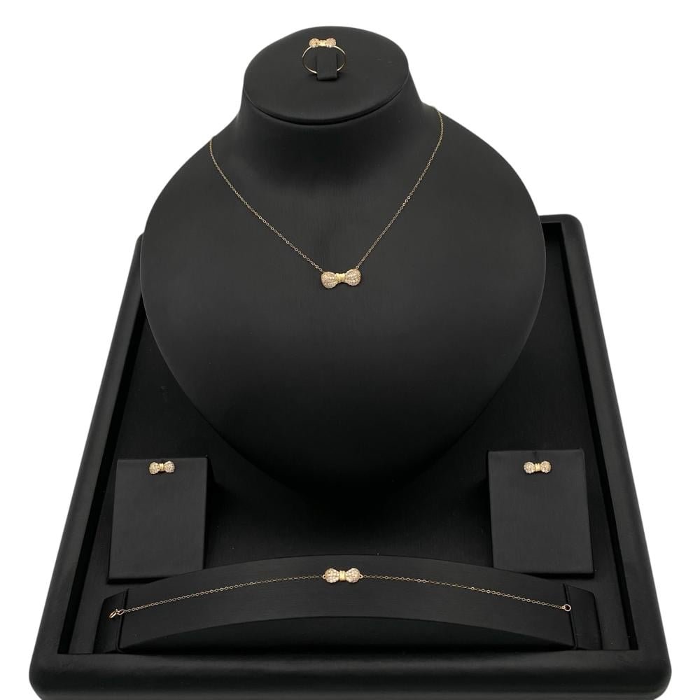 طقم ذهب فيونكة عيار 18 وزن 2.97 جم يضيف بريقًا ناعمًا لا يقاوم