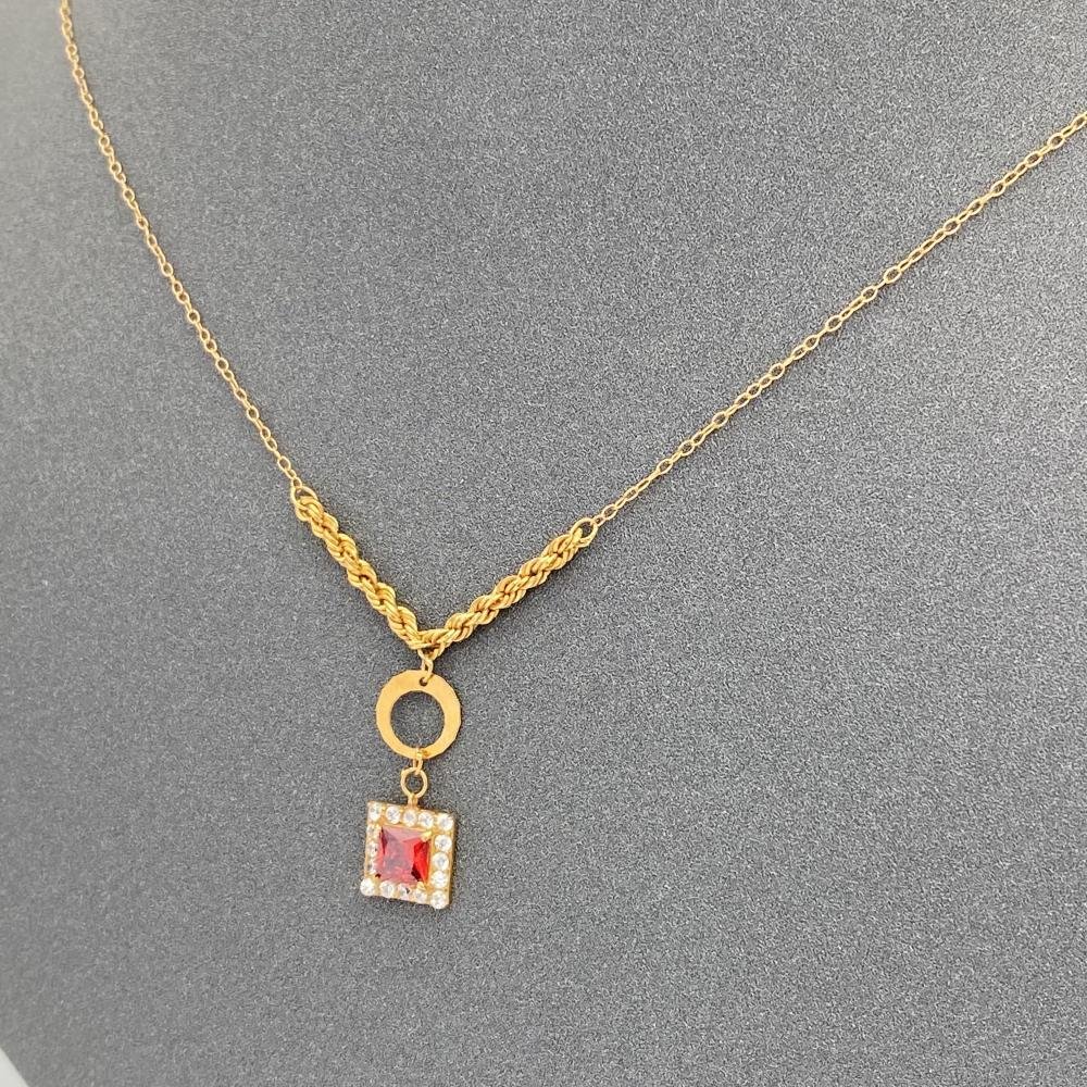 - حجر أحمر متوهّج في منتصف العقد يمنحك جاذبية لافتة تميزك عن الآخرين.