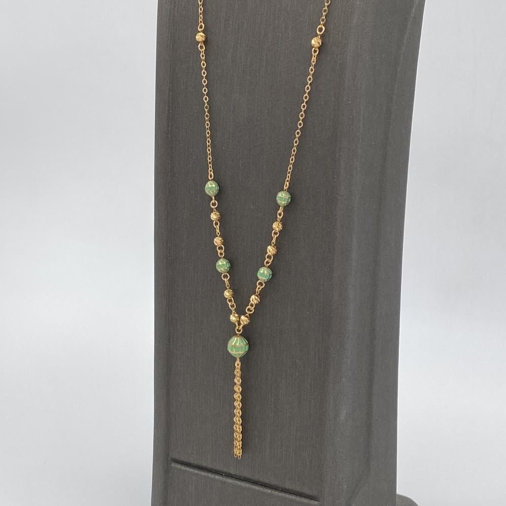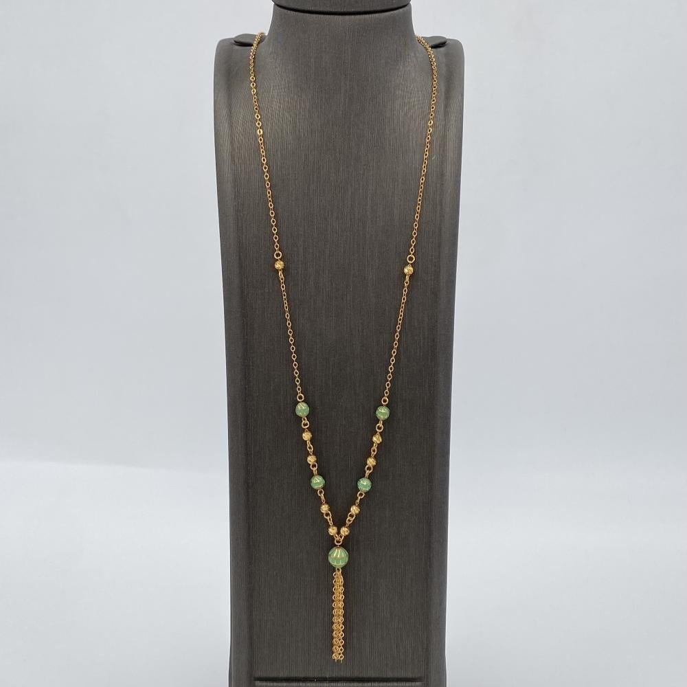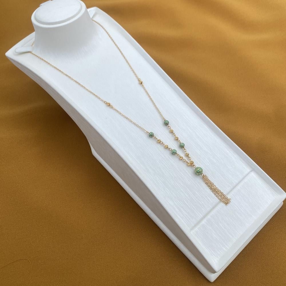 اجعلي هذا العقد السبحة الذهبية جزءًا من مجوهراتك المميزة، واستمتعي ببريق الذهب وفخامته في كل لحظة. هذه القطعة الأنيقة ستعزز من جمالك وتخليك تتألقين في كل مناسبة.